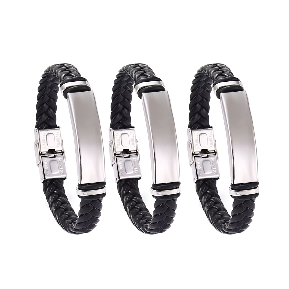 Kit 3 Pulseira Masculina Em Silicone Couro E Aço Inoxidável